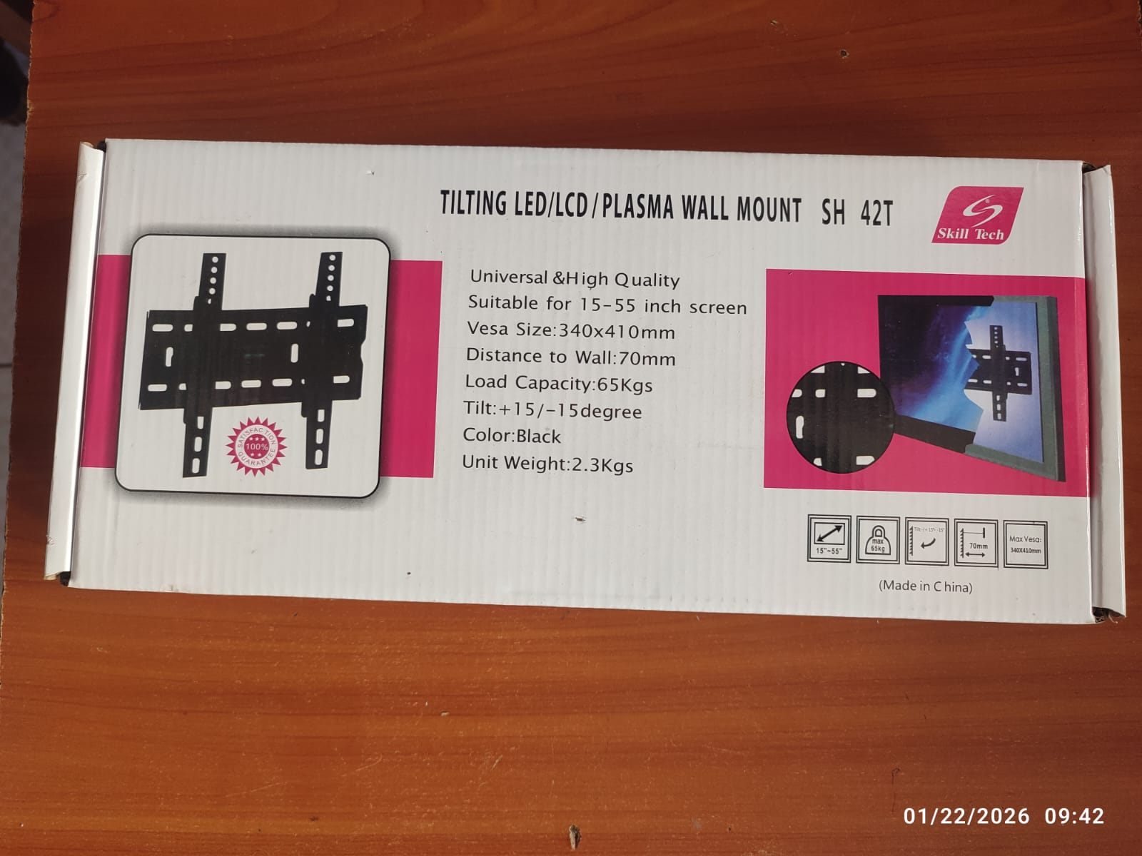 This TV bracket, made of high-quality steel, supports TVs up to 42″. It features a 15ยบ tilt for reduced glare, a slim 6cm profile, . Its sleek black finish and sturdy construction ensure durability and a modern look.